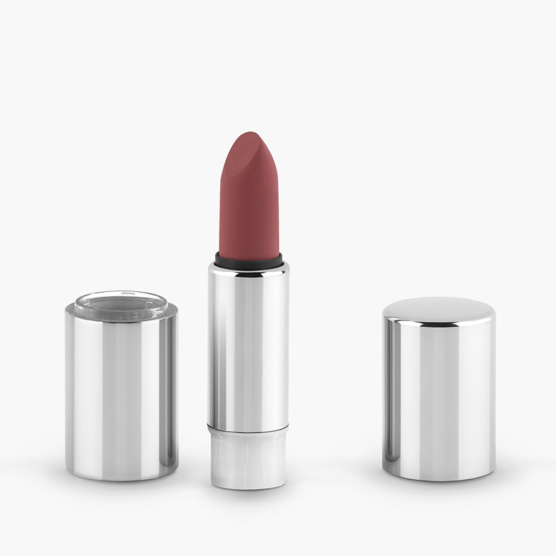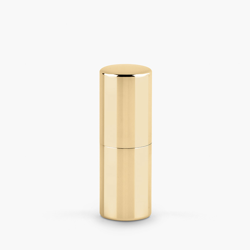 Aluminum lipstick case with standard 12.7 mm rechargeable mechanism, pressure closure.